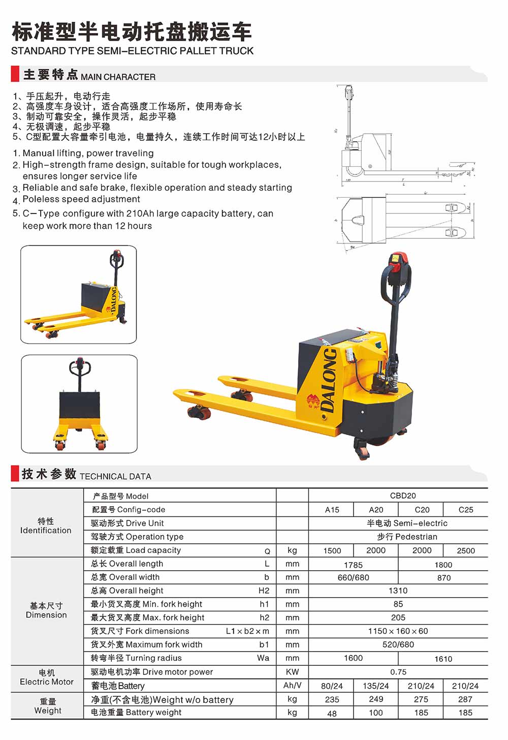 CBDA標準型半電動托盤搬運車