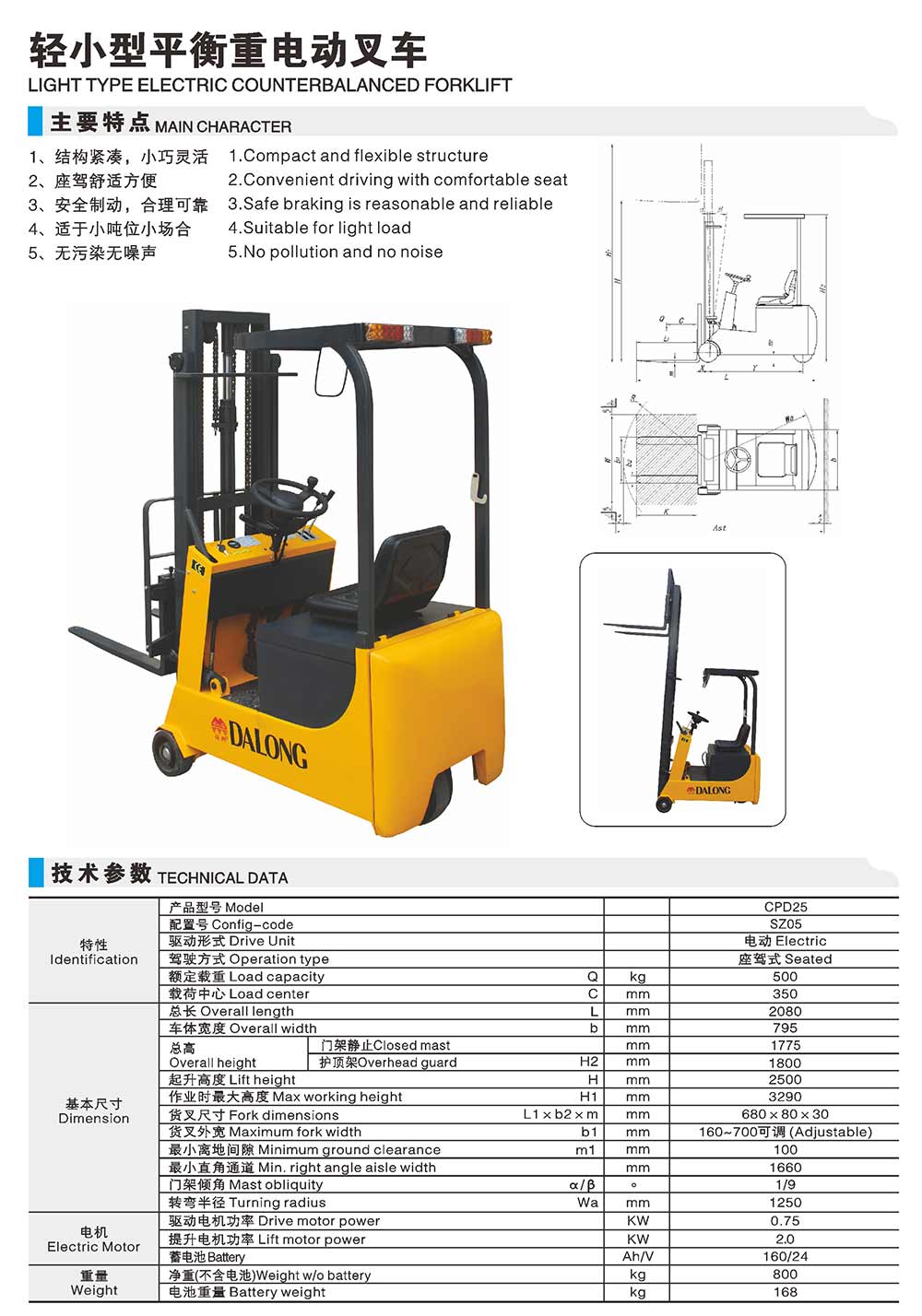 CPD5SZ輕小型電動叉車0.5T