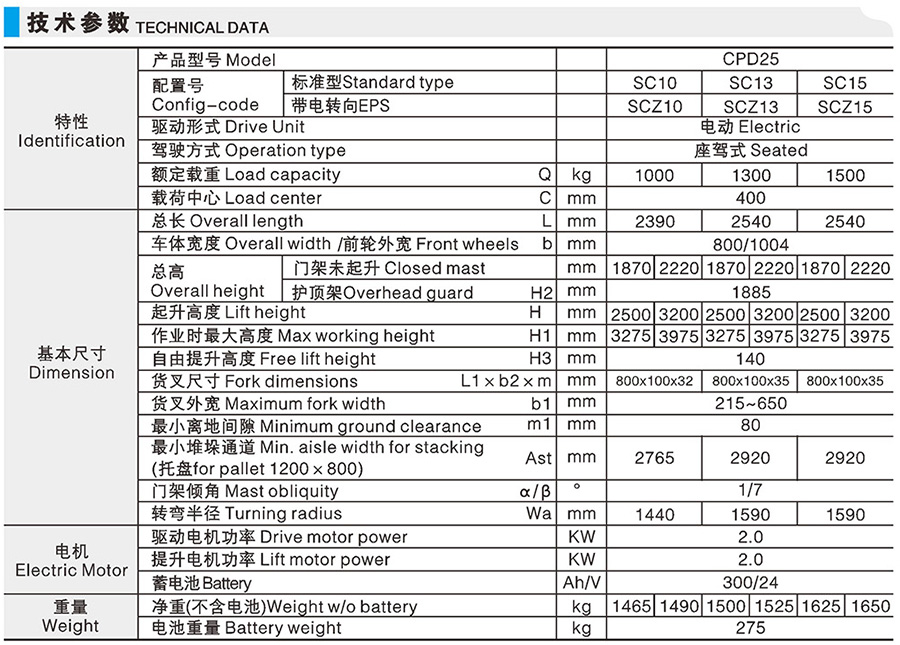 CPDSC 標準型電動叉車(三支點,標準型)