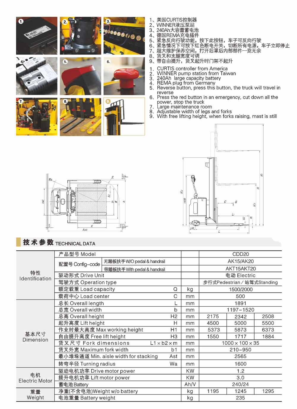 CDDAK全電動堆垛車(自由提升,寬支腿)
